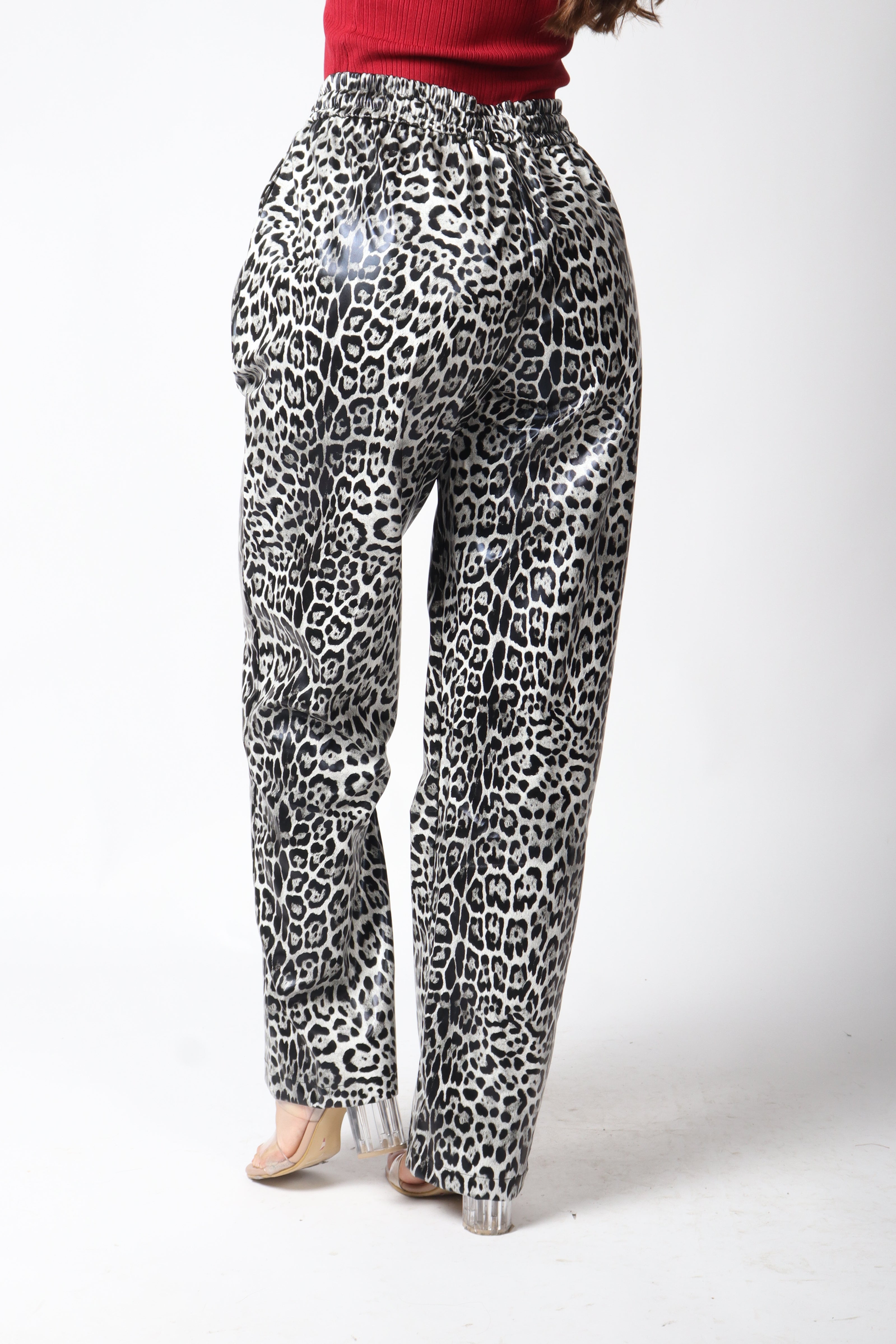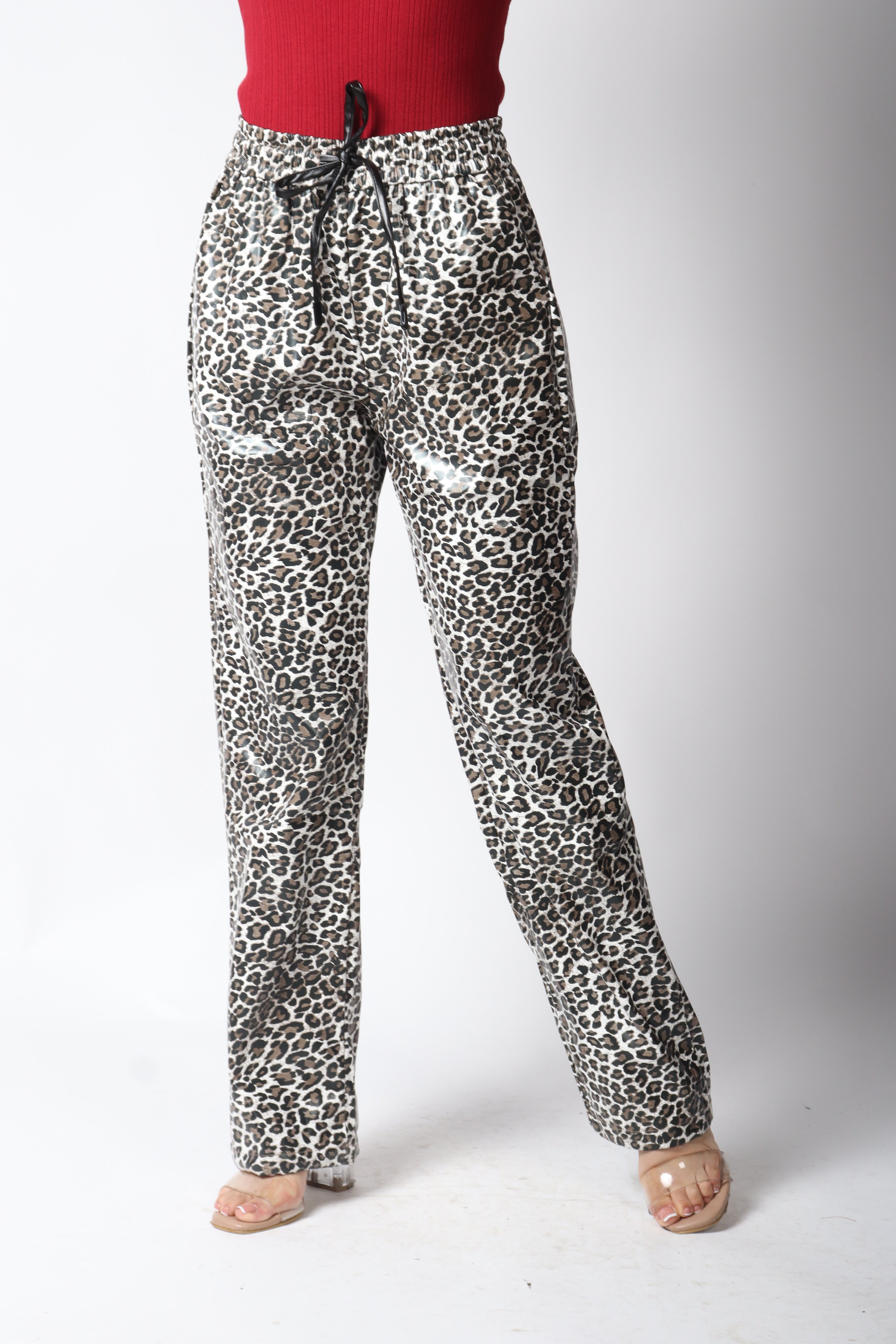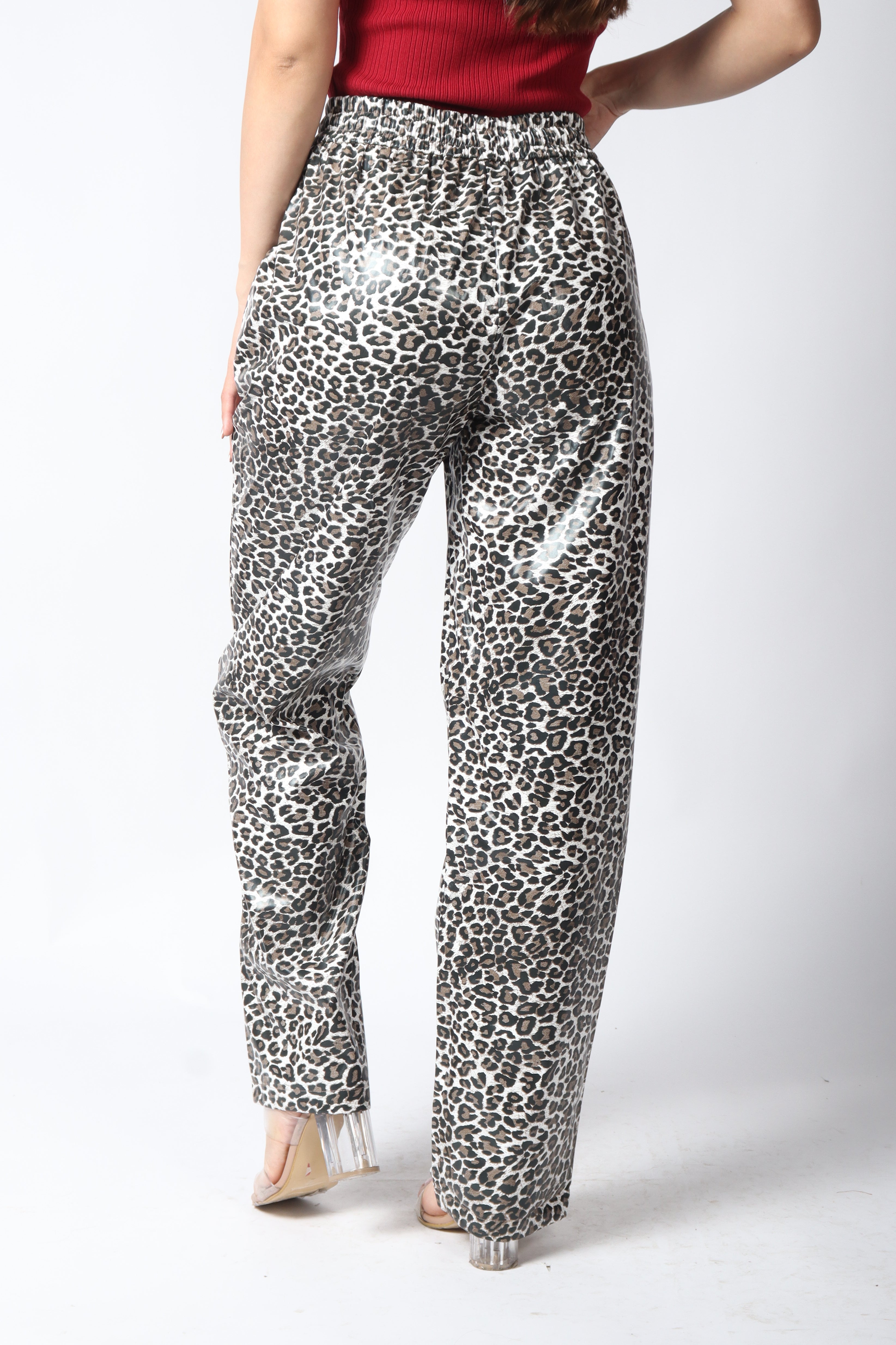 Pantalón vinipiel diseño animal print.