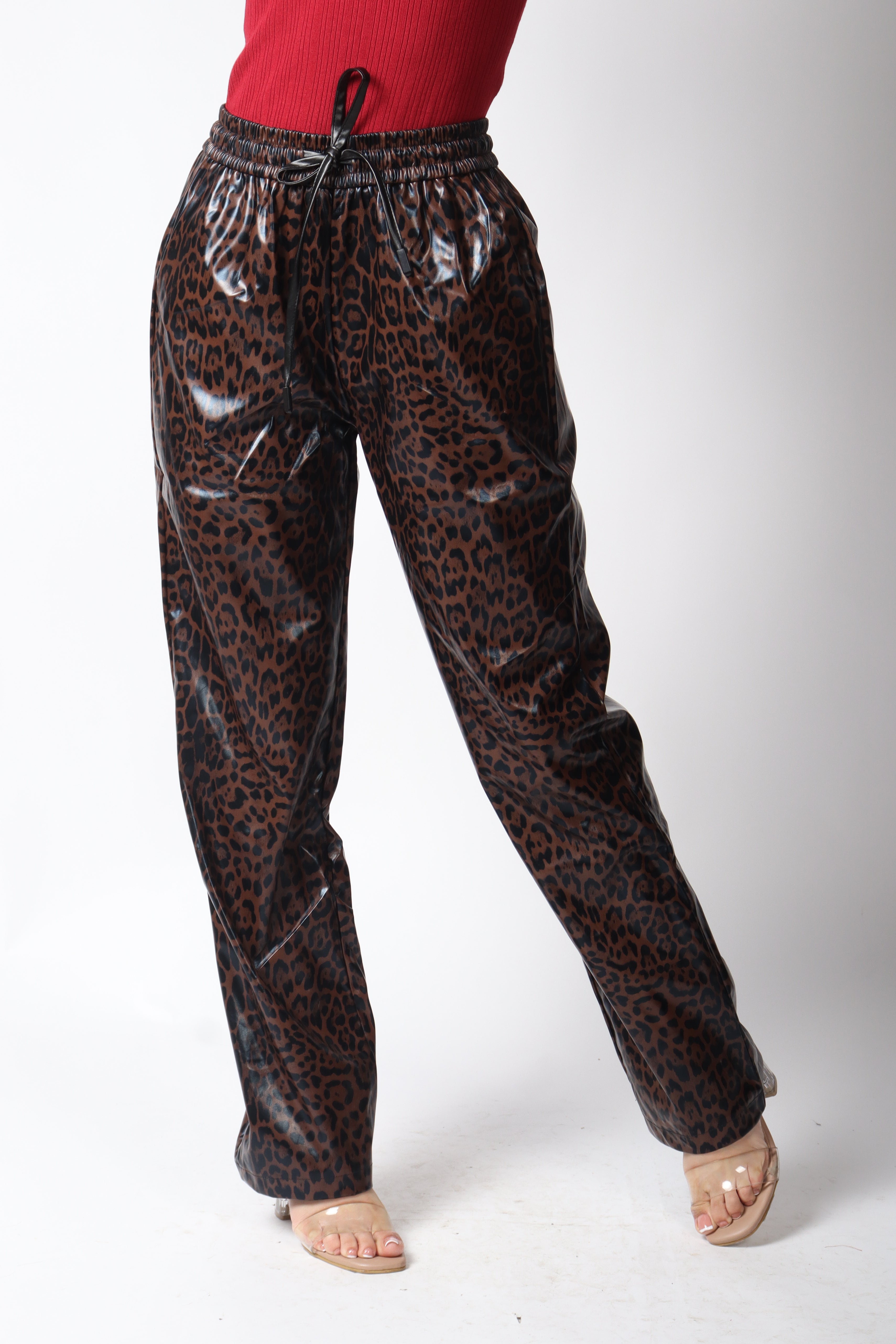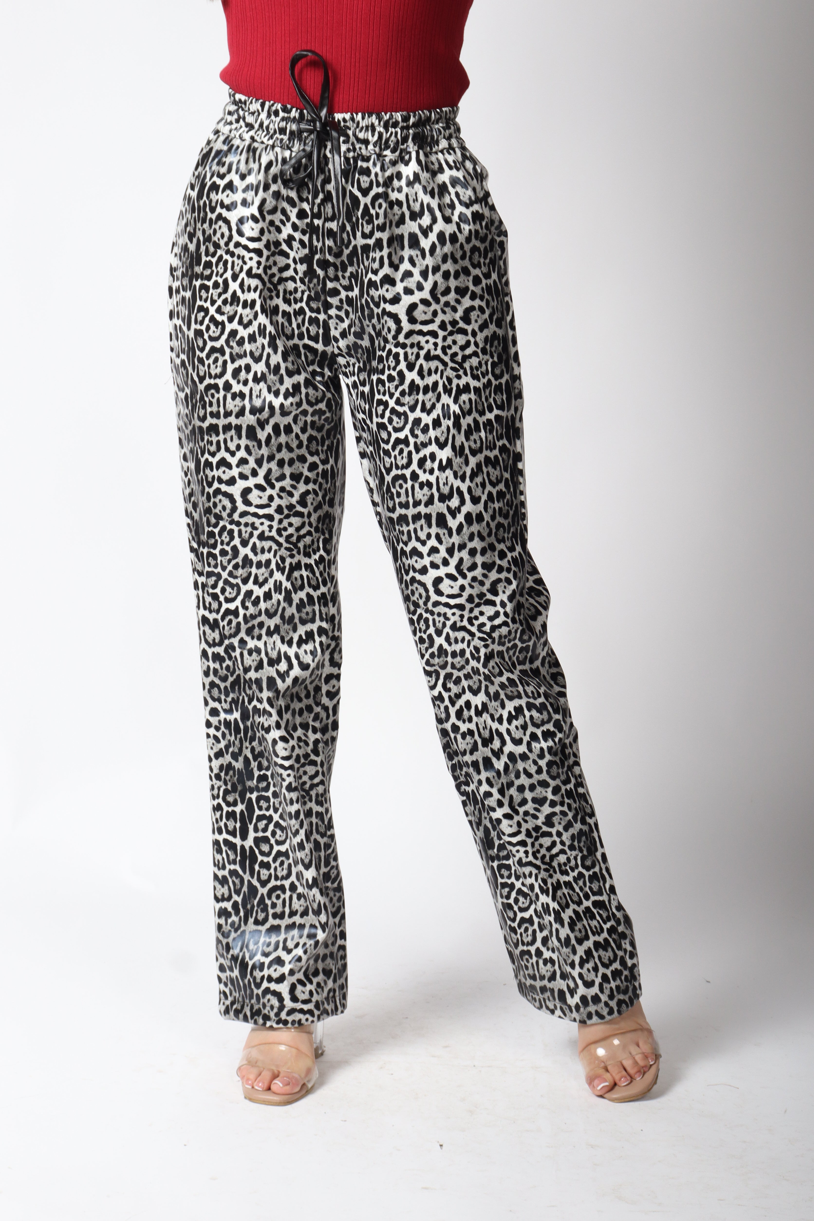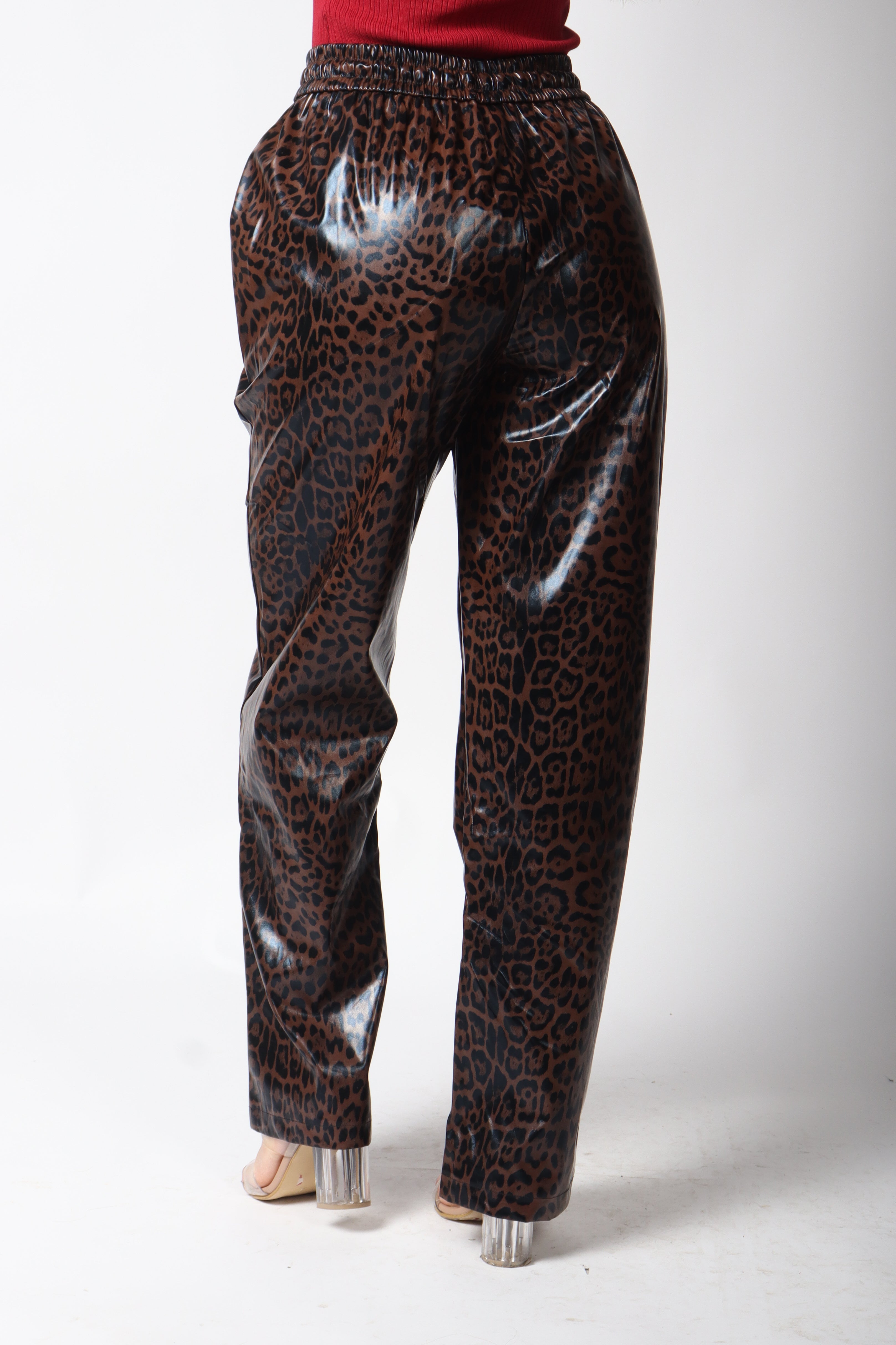 Pantalón vinipiel diseño animal print.